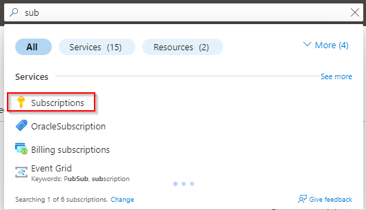 6. Back in Azure, locate the subscription again that the connection is being set up for and click on it.