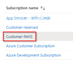 In this example, the subscription that the cloud connection is being made to is called 'Customer PAYG':