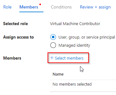 NOTE: Ensure that 'Virtual Machine Contributor' is selected, and not 'Classic Virtual Machine Contributor'.